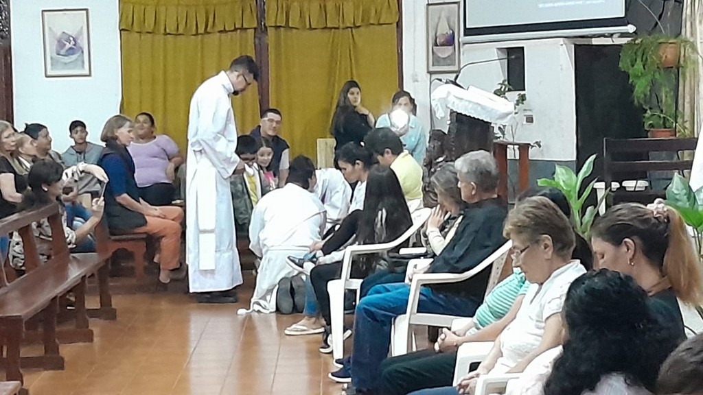 Solemne celebración del Jueves Santo con el lavatorio de los pies y la Institución de la Eucaristía. Acto seguido los feligreses participaron de la Adoración al Santísimo hasta las 24h